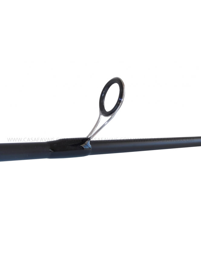 Construída em carbono XT60, vem equipada com porta carretos integrado Shimano WBS e passadores Fuji para uma performance assegurada.
